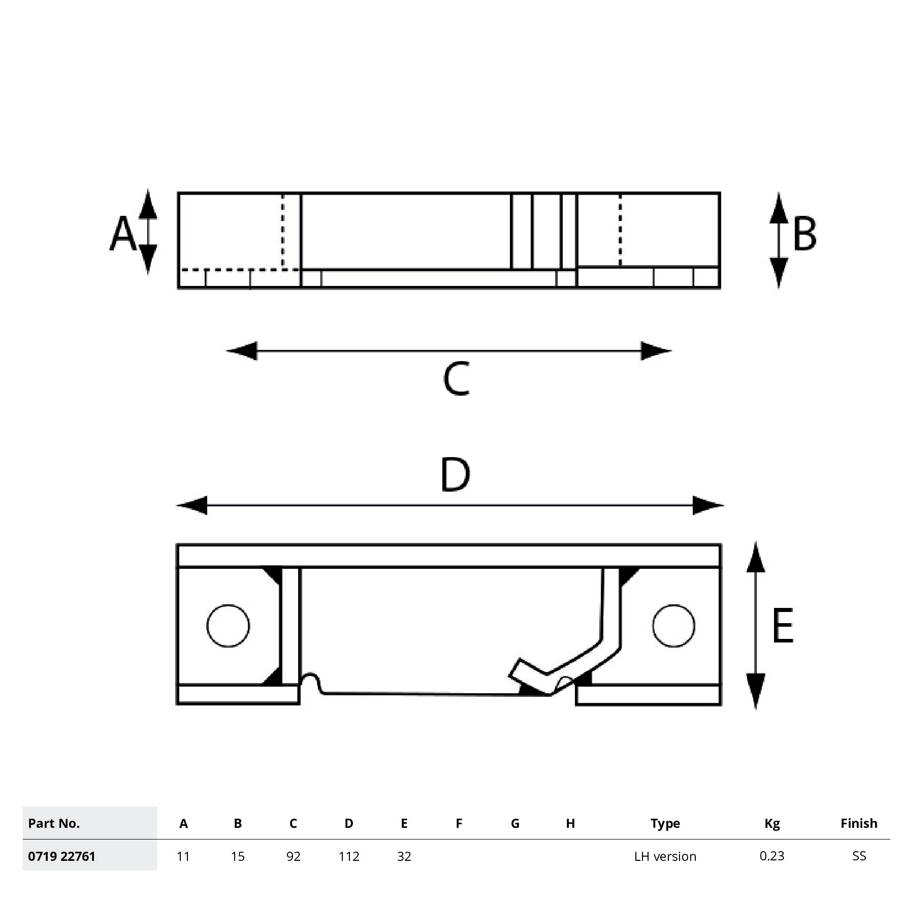 • Part No. 0719 22760 is right hand • Fixing holes: 8.5mm • Drawing shows right hand keeper