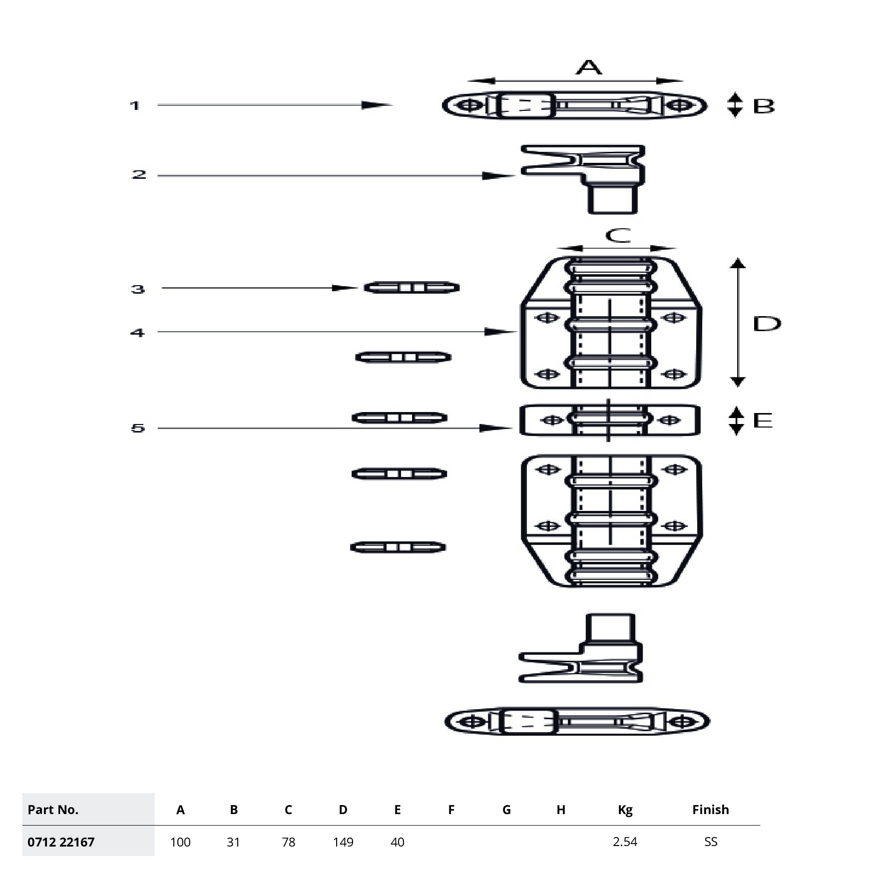 • Keepers x 2 • Cams x 2 • Bushes x 5 • Outer Clamp x 2 • Inner Clamp x 1