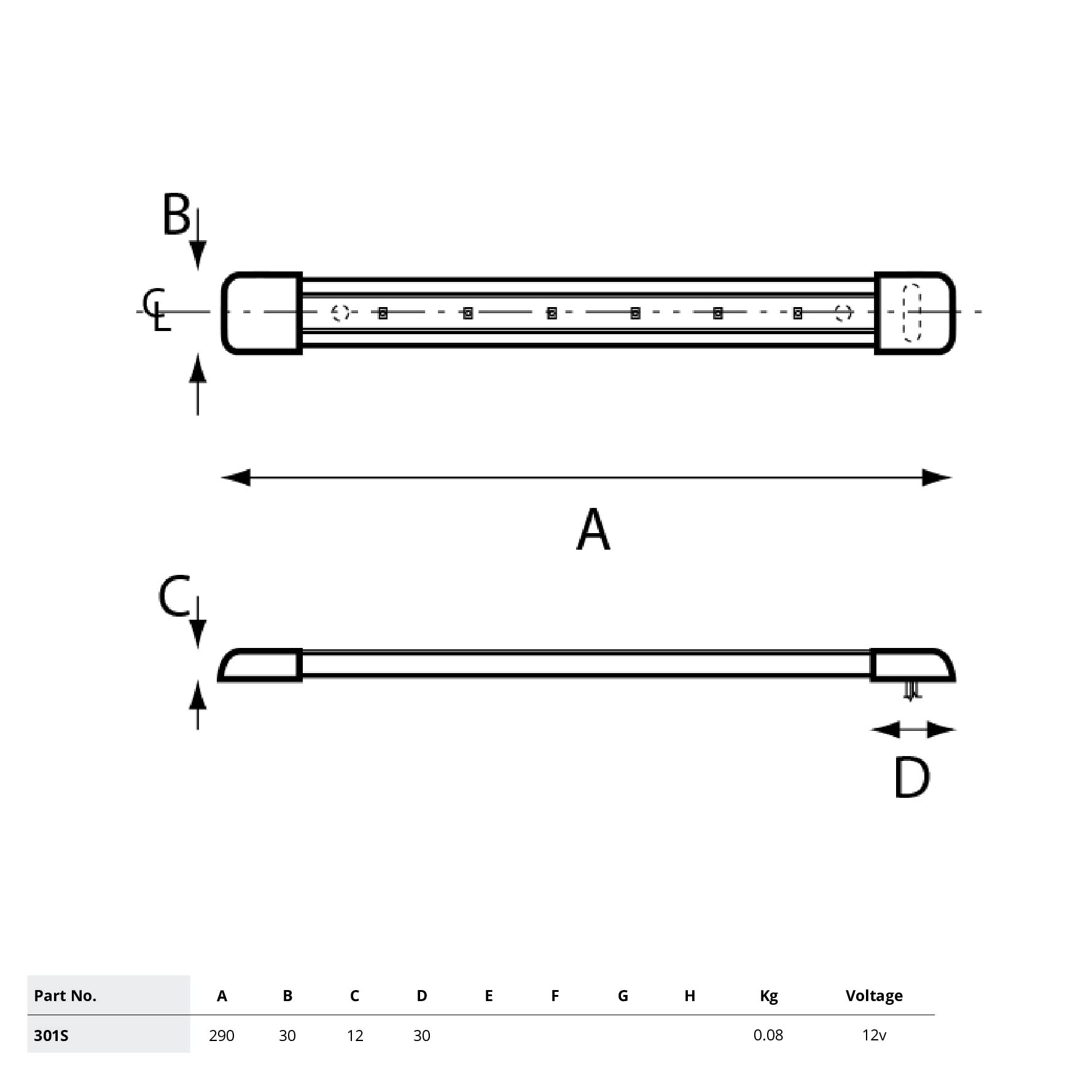 • Part No 301S switched 290mm White LED Light.